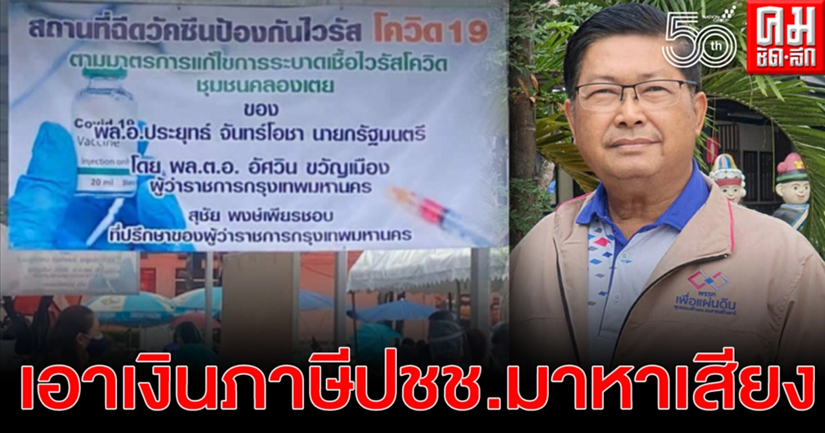 ‘ประมวล’ ฟาดรัฐบาล เอาเงินภาษีประชาชนมาหาเสียง หลังมีป้ายฉีดวัคซีนโควิด19 มีชื่อนายกฯ และชื่อผู้ว่ากทม. ติดหรา
