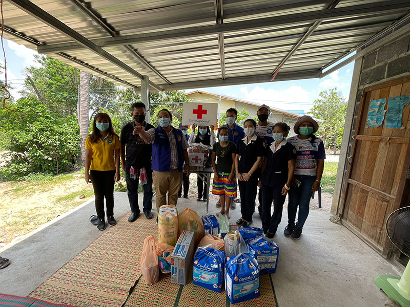 พร้อมด้วย สมาชิกกิ่งกาชาดอำเภอชุมพลบุรี นายเสรี ชึรัมย์ นายกเทศมนตรีตำบลยะวึก พร้อมคณะผู้บริหารเทศบาลตำบลยะวึก ผู้ใหญ่บ้าน อสม.ในพื้นที่ ร่วมกันมอบถุงปันสุข ให้กำลังใจ เพื่อเป็นการให้ความช่วยเหลือเบื้องต้น