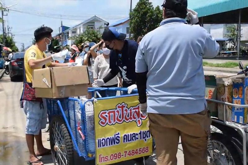 และจากนั้นก็มีผู้ที่ทราบข่าวนำสิ่งของมาบริจาคโดยบางคนนำใส่หีบห่อมาให้เรียบร้อย ตนจึงตั้งเป็นรถปันสุขออกช่วยเหลือชาวบ้านโดยเน้นไปที่ผู้ที่ฐานะยากจนเป็นหลัก และตนจะทำต่อไปจนกว่าสถานการณ์จะเป็นปกติ ส่วนผู้ที่อยากสนับสนุนนั้นขอแจ้งว่าตนไม่ต้องการเงินแต่อยากได้สิ่งของประเภทข้าวสารและอาหารแห้งมากกว่า ทั้งนี้เมื่อมีคนบริจาคเข้ามาตนเลยกลายเป็นสะพานบุญ ซึ่งก็ขอชี้แจงก่อนว่าหากอยากร่วมทำบุญ ตนไม่ขอรับเงินแต่จะรับแต่สิ่งของ และจะร่วมกันออกแจกอาหารเดือนละ 2 ครั้ง เพราะหลังจากออกไปแจกแล้วแม้เราจะเว้นระยะห่างแต่ตนและคนในกลุ่มก็ต้องกักตัว 14 วันทุกครั้งทำให้ทำได้เดือนละ 2 ครั้งดังกล่าว