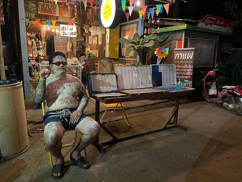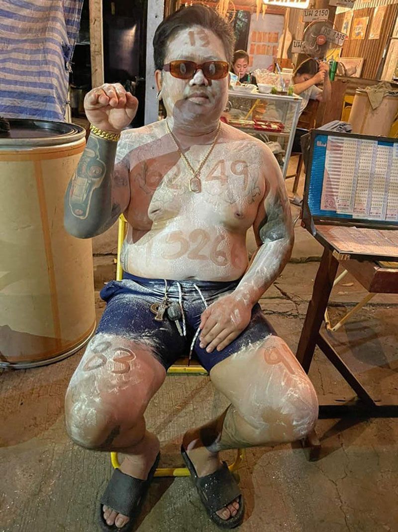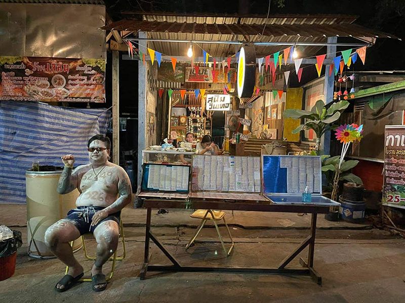 วันที่ 10 พฤษภาคม 2564 ผู้ใช้เฟซบุ๊ก ชื่อว่า “รุจน์ พระนคร” โพสต์รูปภาพของผู้ชายคนหนึ่ง ซึ่งเป็นเพื่อนสนิทกัน โดยทั้งตัวเต็มไปด้วยแป้งฝุ่น จนขาวโพลนไปทั่วตัว และมีการเขียนเป็นตัวเลขต่างๆ ไว้ นั่งอยู่ข้างแผงขายลอตเตอรี่