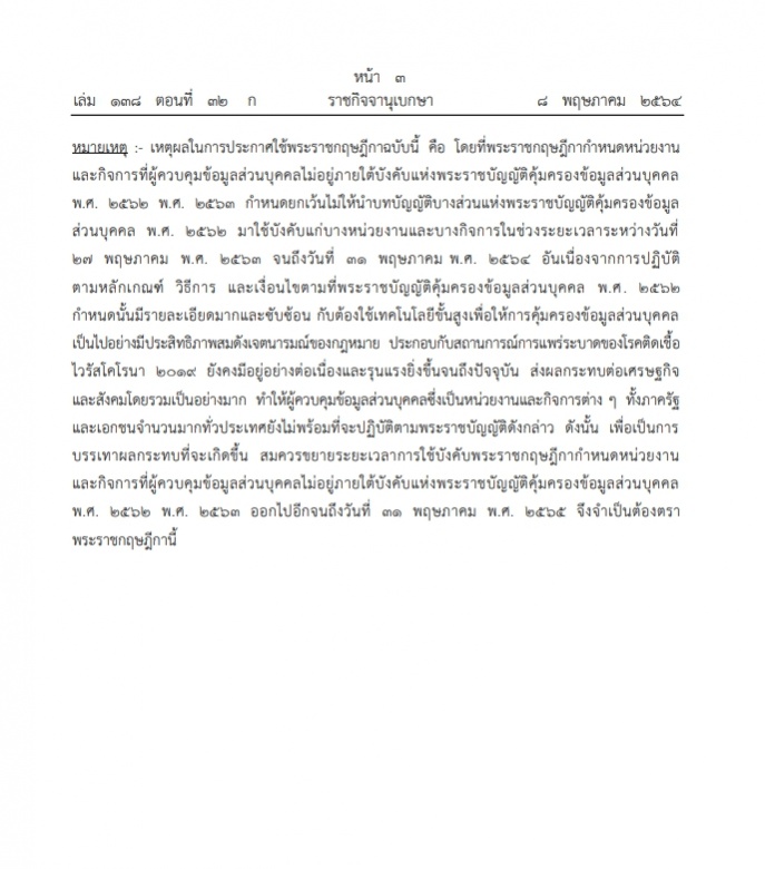 ‘ราชกิจจานุเบกษา’ เผยแพร่ประกาศ พระราชกฤษฎีกา เลื่อนการบังคับใช้ พ.ร.บ.คุ้มครองข้อมูลส่วนบุคคล ออกไปถึง 31 พ.ค.2565