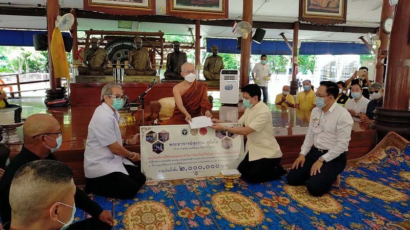 หลวงพ่อสุธรรม สุธัมโม เจ้าอาวาสวัดป่าบ้านตาด มอบเงินช่วยจังหวัดสู้ภัยโควิด เพื่อจัดหาเวชภัณฑ์ที่ขาดแคลน ดูแลสวัสดิการบุคลากรทางการแพทย์และช่วยเหลือประชาชนในช่วงโควิดระบาดจำนวน 2 บ้านบาท
