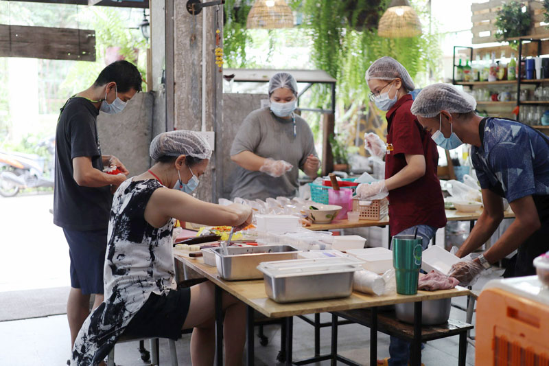 นางนงนุช คล่องสั่งสอน อายุ 45 เจ้าของร้านข้าวต้มอารมณ์ดี ม.นเรศวร จังหวัดพิษณุโลก กล่าวว่า ทางร้านข้าวต้มอารมณ์ดี ร้านอาหารไม่เล็ก ไม่ใหญ่ เคียงคู่รั้วมหาวิทยาลัยนเรศวร จึงขอเป็นส่วนหนึ่งในการดูแลเจ้าหน้าที่ส่วนนี้ด้วยการทำอาหารเย็นไปมอบในทุกๆวัน แต่อาหารกล่อง ที่นำไปมอบนั้น ไม่ใช่เพียงแค่อิ่มท้อง แต่อบอวลไปด้วยความพิธีพิถัน ความใส่ใจในรายละเอียด และความคิดสร้างสรรค์ สีสันในอาหารสร้างความอิ่มอกอิ่มใจ สร้างรอยยิ้มให้กับเจ้าหน้าที่ได้