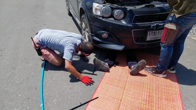 ทุกชีวิตมีค่า กู้ภัยฯใจหล่อ มุดช่วยชีวิตลูกแมวติดใต้ท้องรถกลางถนน