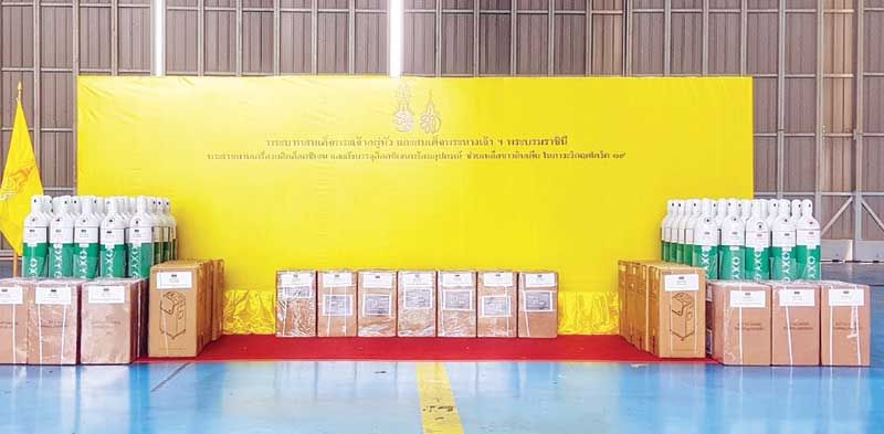 รศ.ดร.จิรายุ อิศรางกูร ณ อยุธยา องคมนตรี เชิญเครื่องผลิตออกซิเจน และถังบรรจุก๊าซออกซิเจนพร้อมอุปกรณ์พระราชทานไปมอบให้แก่ สุจิตรา ทุไร ออท.อินเดีย