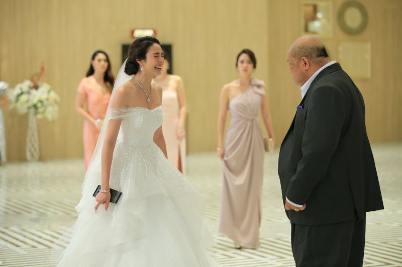 เบื้องหลังที่เก็บมาฝากเป็นฉากที่ให้แฟนละครได้ตามลุ้นบทสรุปความรักที่ถูกกีดกันว่าจะลงเอยอย่างไรฉากนี้เป็นตอนที่ ฟ้าใส (พริม-พริมา) ไปแสดงความยินดีอย่างจริงใจให้กับไตรวิช (โอม-คณิน)ที่ตัดสินใจแต่งงานกับอรณิชา (ชมพู-ชุติมณฑน์) ตามคำสั่งเจ้าสัวเทียน (จตุรงค์ โพธาราม) แต่ฟ้าใสก็แอบเศร้าที่ต้องเห็นคนที่รักแต่งงานกับคนอื่น แต่แล้วในงานแต่งก็เกิดเหตุการณ์ไม่คาดฝัน เมื่อเสี่ยลีพ่อของอรณิชาจับเจ้าสัวเทียนเป็นตัวประกัน ในระหว่างชุลมุนเสี่ยลีจนมุมต้องการหนีจากการจับกุมของไตรวิชนั้น ก็เล็งปืนยิงเจ้าสัว ฟ้าใสเห็นรีบเข้าไปเอาตัวบังกระสุนล้มลง ท่ามกลางความตกตะลึงของคนทั้งงาน แต่ที่เสียใจสุดคือไตรวิชนั่นเอง!