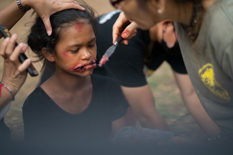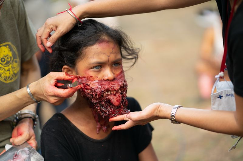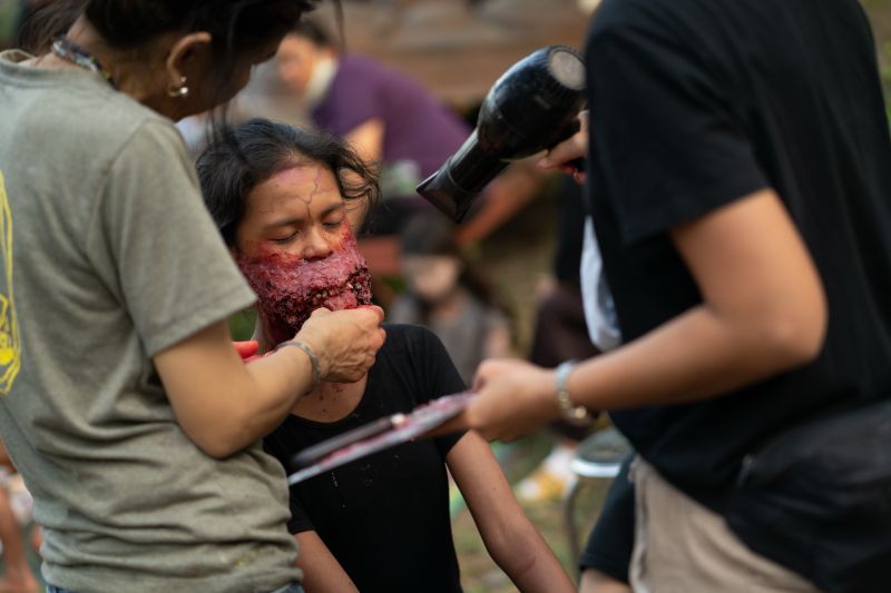 ฝั่ง “พี่ตุ๊กตา” ก็สยองไม่แพ้กัน นาง(ป่าน-ปานชีวา มนต์สิริ)วิญญาณที่สิงในตุ๊กตาวันนี้แต่งหน้าเอฟเฟ็กต์รอเข้าฉากตั้งแต่เช้าตรู่กว่าจะสยอง เอ๊ย! กว่าจะเสร็จสมบูรณ์ด้วยผีมือ “หนึ่ง”ศิริรัตน์ แจ่มฟ้า ช่างแต่งหน้าเอฟเฟ็กต์แถวหน้าของเมืองไทยที่สะบัดแปรงไปเกือบ 5 ชั่วโมง และฉากนี้วัดใจนักแสดงน้องใหม่ “ยู้ฮู-ณัฐดนัย ชัยภูมิ” ลูกชายสุดที่เลิฟของพิธีกรลูกทุ่งคนดัง “นก-บริพันธ์” ที่รับบทเด็กดูแลโรงงานตุ๊กตานรกให้คุณนายสมร(เปิ้ล-จารุณี) เข้าฉากปุ๊บก็สยองปั๊บ ป๊ะหน้ากับผีนางกันเลย..อินเนอร์สะพรึงแรงแค่ไหน….รอลุ้น!!