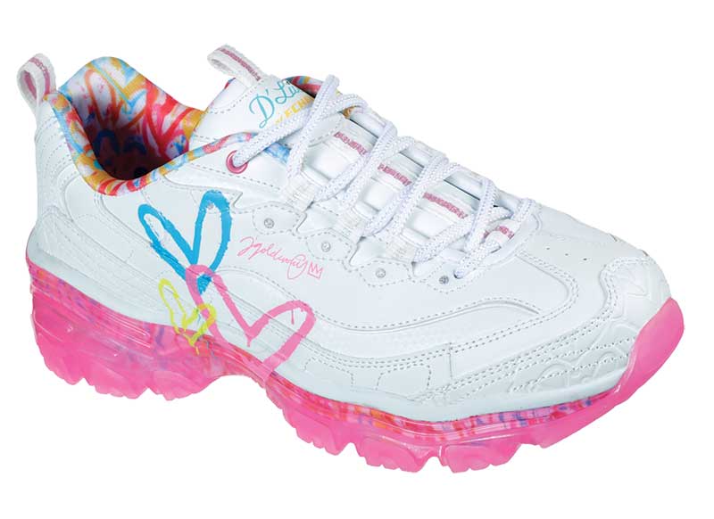 SKECHERS (สเก็ตเชอร์ส) แบรนด์กีฬา และไลฟ์สไตล์ชั้นนำ สัญชาติอเมริกัน สร้างความแปลกใหม่ให้กับวงการสตรีทแฟชั่นอีกครั้ง ด้วยการร่วมมือกับ เจมส์ โกลด์คราวน์ (James Goldcrown)ศิลปินกราฟิตี้ระดับโลก สร้างสรรค์คอลเลคชั่นSKECHERS x JGoldcrown โดยนำลายกราฟิกรูปหัวใจหลากสีสัน จากผลงาน “เลิฟ วอลล์” (Love Wall) ที่โด่งดังระดับโลก มาเป็นแรงบันดาลใจในการออกแบบเป็นลวดลายปรินท์รูปหัวใจสุดคิ้วท์บนรองเท้าและเสื้อผ้าสำหรับสุภาพสตรี