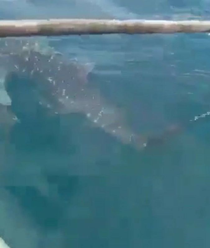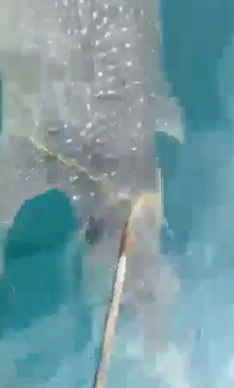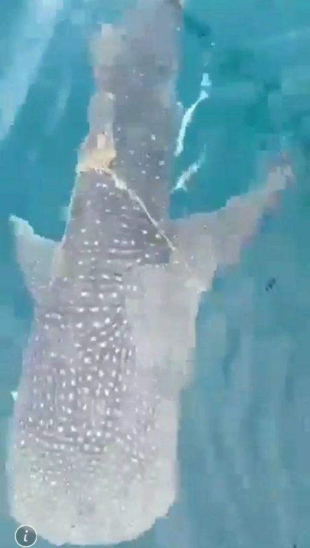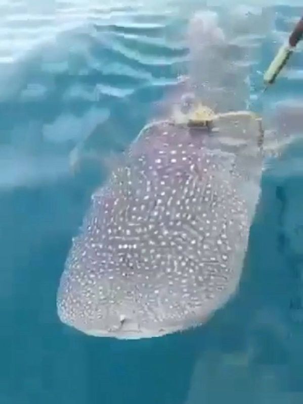 ภาพสุดประทับใจ! ลูกฉลามวาฬว่ายน้ำเข้าขอความช่วยเหลือจากถูกเชือกอวนรัด