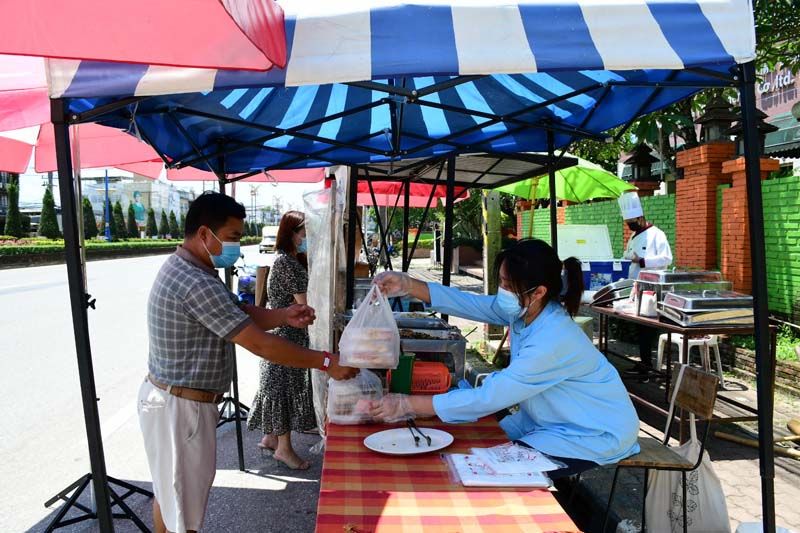 14 พ.ค.64 นางสาวผกายมาศ เวียร์รา ประธานหอการค้าแม่สาย และรองประธานหอการค้าจังหวัดเชียงราย ในฐานะ ประธานกรรมการบริหารกลุ่มบริษัทแม่โขง เดลต้า และดำเนินธุรกิจโรงแรมแม่โขง เดลต้า บูติค อ.แม่สาย จ.เชียงราย ได้เปิดพื้นที่หน้าโรงแรมฯ ซึ่งตั้งอยู่ริมถนนพหลโยธิน ขาเข้าอำเภอแม่สาย ตั้งซุ้มจำหน่ายอาหารกล่อง พร้อมขึ้นป้ายจำหน่ายข้าวกล่อง ในราคาเพียง 15 บาท โดยมีหลากหลายเมนูอาหารได้เลือก นับสิบอย่าง และเป็นอาหารที่ปรุงสุกใหม่ทุกวันทั้งนี้ยังได้มีการป้องกันโควิด 19 ตามมาตรการสาธารณสุข คนขาย รวมทั้งเชฟทำอาหารจะสวมหน้ากากอนามัยใส่ถุงมือ และมีฉากกั้นพลาสติกใสกั้นระหว่างคนซื้อกับอาหารอีกด้วย