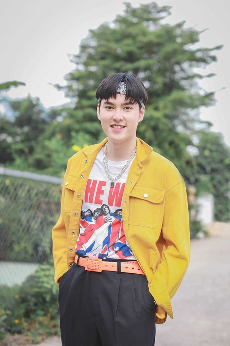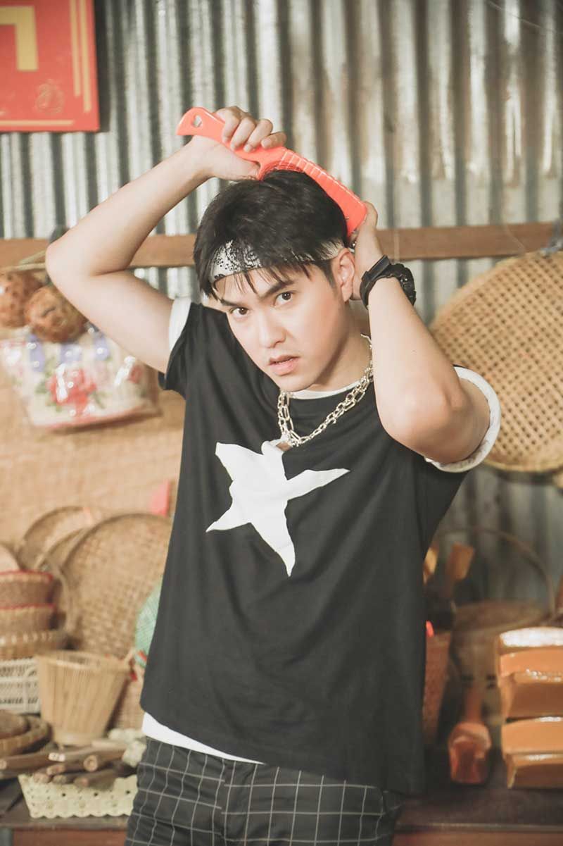 “ตอนแรก พี่ๆ ทีมงานบอกว่าคาแร็กเตอร์ของผมจะเป็นคนที่ชอบแต่งตัวแบบซุป’ตาร์ยุค 90 เป็นคนที่มั่นใจว่าตัวเองหล่อมาก ทีมงานจัดเต็มมาก คอลเลคชั่นเสื้อผ้าของผมแน่นสุด แค่เห็นชุดก็ฮาแล้ว สีสันจัดจ้านมาก แต่ละตอนในซิทคอม ผมได้แต่งตัวหลายแนวมาก มีแนวพี่เต๋า- สมชาย, พี่ลิฟท์-สุพจน์ จันทร์เจริญ,พี่ออย-ธนา สุทธิกมล, พี่ทาทา ยัง อะไรแบบนี้ คือ ศิลปินยุค 90 มารวมอยู่ในตัวผมคนเดียว เวลาทีมงานเรียกเข้าฉากก็จะแซว แล้วจะเดินเข้าฉากช้ากว่าคนอื่นนิดหนึ่ง เพราะแต่งเยอะ