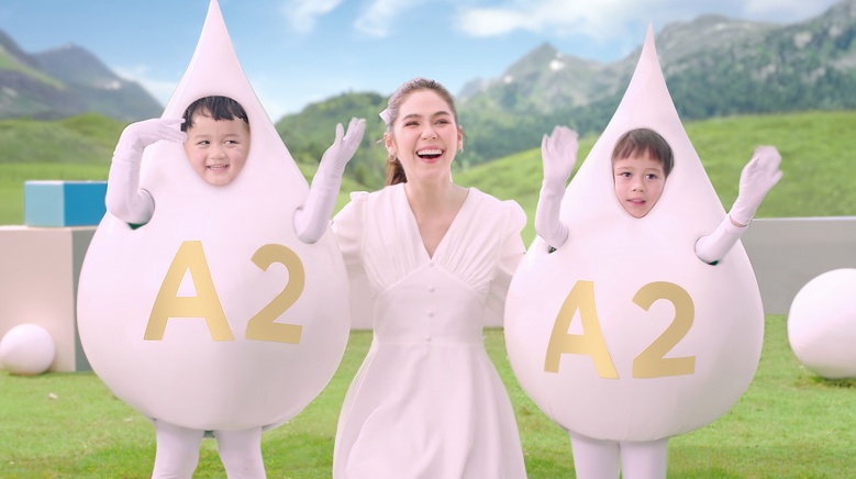 งานนี้สองแฝดต้องรับภารกิจโชว์ฝีมือการแสดงเหนือระดับขึ้นไปอีกขั้นในลุคมาสคอตน้องหยดนม A2 สุดคิวต์ ประกบคุณแม่ชม “ชมพู่ อารยา เอ ฮาร์เก็ต” และเพื่อนๆอีกกว่า 20 คน เรียกได้ว่าทั้งแม่และลูกปล่อยของกันเต็มที่ ยิ่งได้ยินเพลงโปรดก็วาดลวดลายออกสเต็ปสู้กล้องแบบไม่มีใครยอมใคร เห็นแล้วน่ารักน่าหยิกคูณสองเลยทีเดียว