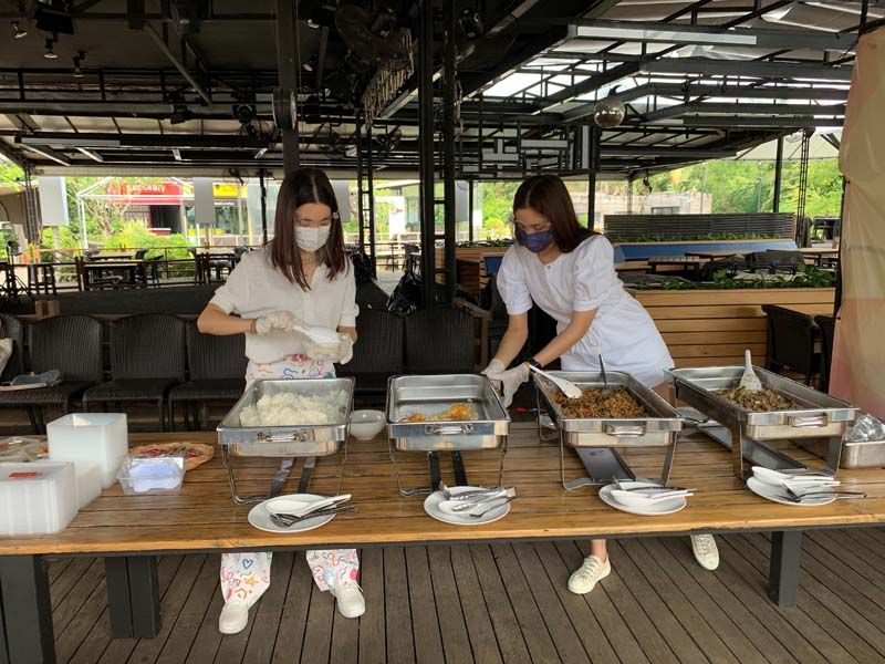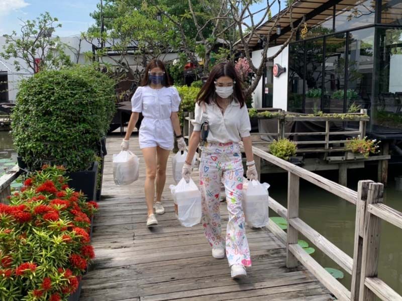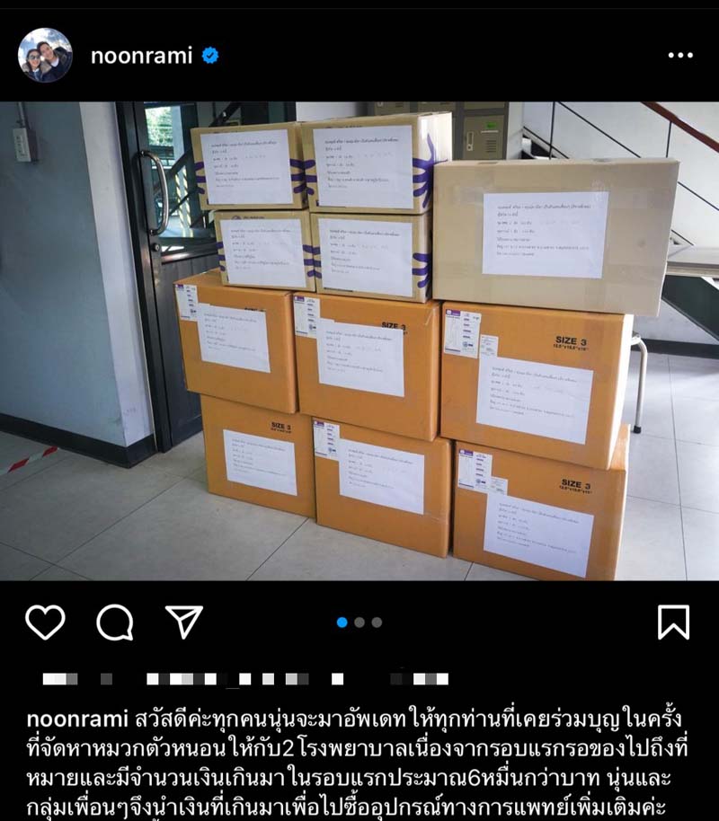 และสองนางเอกยิ้มหวาน “โม- มนชนก แสงฉายเพียงเพ็ญ” และ “พรีม-รณิดา เตชะสิทธิ์”พร้อมด้วยเพื่อนๆ นักแสดงในบ้านฮับซับร่วมกันส่งข้าวกล่องมื้อกลางวันอร่อยๆ ไปให้ทีมแพทย์, พยาบาล และบุคลากรทางการแพทย์หลายร้อยชีวิตที่โรงพยาบาลรามาธิบดี