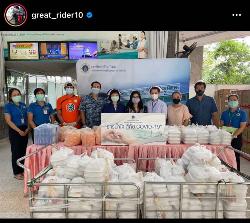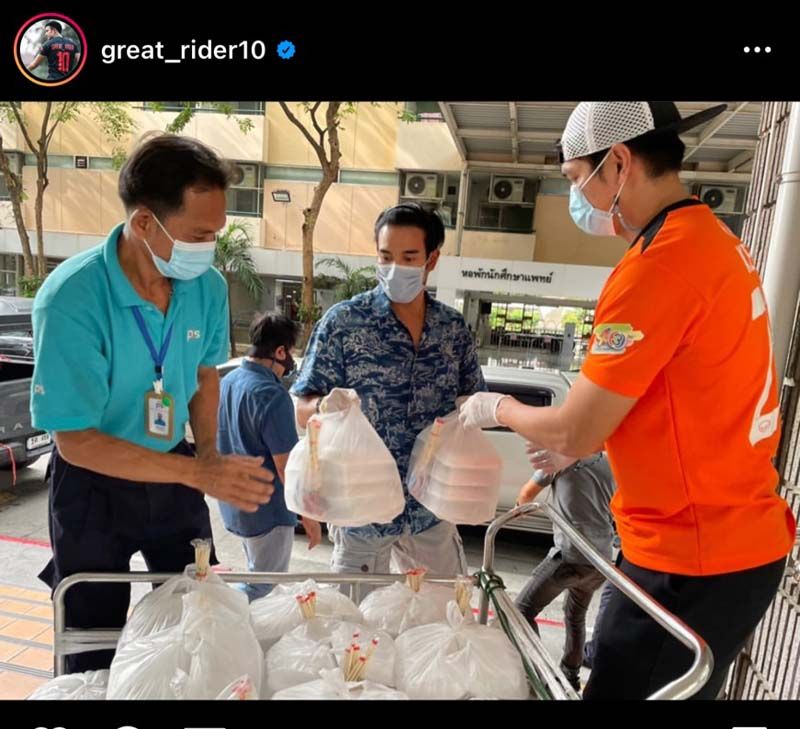 ฝั่งหนุ่มสายเข้ม “เกรท-วรินทร ปัญหกาญจน์” ร่วมกับ ค่ายเมคเกอร์เค กรุ๊ป ที่ขอเปลี่ยนออฟฟิศเป็นโรงครัว เพื่อส่งกำลังใจด้วยอาหาร 1,000กล่อง ให้กับ 2 โรงพยาบาล ได้แก่ โรงพยาบาลราชวิถี และโรงพยาบาลวชิระพยาบาล ที่ถือเป็นด่านหน้าดูแลผู้ติดเชื้อโควิด-19 และทีม เมคเกอร์ เค ยังคงคอยซัพพอร์ตช่วยเหลือทีมแพทย์พยาบาลรวมถึงบุคลากรทางการแพทย์ต่อไป