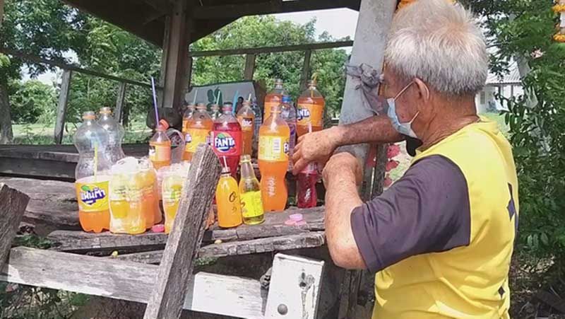 วันที่ 15 พ.ค.64 ผู้สื่อข่าวรายงานว่า ที่บริเวณ “ศาลปู่ทอง” ตรงสามแยกหน้า อบต.ไกรกลาง หมู่ 3 บ้านดอนสัก ต.ไกรกลาง อ.กงไกรลาศ จ.สุโขทัย ยังคงมีประชาชนแวะเวียนกันมากราบไหว้ขอพร รวมทั้งแก้บนศาลปู่ทอง สิ่งศักดิ์สิทธิ์ที่อยู่คู่หมู่บ้านมานานถึง 300 ปี กันอย่างไม่ขาดสาย โดยเฉพาะน้ำส้ม น้ำแดง ซึ่งกลายเป็นเครื่องเซ่นไหว้ยอดนิยม จะมีวางตั้งอยู่ทุกวัน ตลอดหลายสิบปีที่ผ่านมา