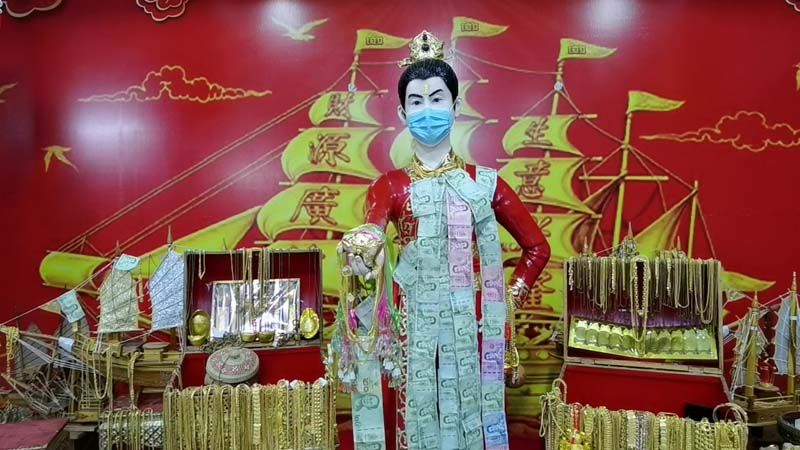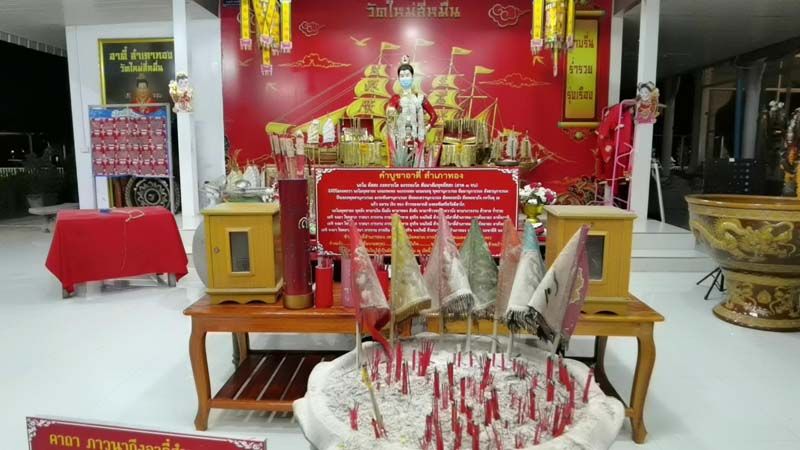 จากสถานการณ์โควิด-19 ที่มีการแพร่ระบาด ทำให้ทางวัดใหม่สี่หมื่น ได้วางมาตรการเข้ม ด้วยการให้ผู้ที่จะมากราบไหว้สิ่งศักดิ์สิทธิ์ประจำวัด โดยเฉพาะ “อาตี๋ สำเภาทอง” พ่อค้าสำเภาจีน เทพเจ้าสายเฮง ทางผู้ดูและได้นำหน้ากากอนามัยมาถวายและใส่ให้และมีการเปลี่ยนในทุกๆวัน เพื่อเป็นการเตือนสติผู้มี่มาขอพรขอโชคลาภให้ใส่หน้ากากอนามัย และต้องใส่ถุงมือด้วย นอกจากนี้ทางวัดใหม่สี่หมื่นได้ประกาศประชาสัมพันธ์ผ่านสื่อออนไลน์ ให้ผู้ที่จะเดินทางมากราบไหว้โดยเฉพาะ พื้นที่ควบคุมสูงสุด-เข้มงวด (สีแดงเข้ม) 4 จังหวัด กรุงเทพฯ จังหวัดชลบุรี จังหวัดประทุมธานี จังหวัดสมุทรปราการ พื้นที่ควบคุมสูงสุด (สีแดง) ให้งดหรือหลักเลี่ยงการเดินทางมาในระยะนี้ ส่วนจังหวัดใกล้เคียง ก็สามารถเดินทางมาไหว้ได้ตามปกติ โดยทางวัดจะมีเจ้าหน้าที่คอยตรวจคัดกรอง และผู้ที่จะเข้ามากราบไหว้ขอพรต้องปฏิบัติตามมาตรการอย่างเคร่งคัด ส่วนผู้ที่ไม่สามารถเดินทางมาได้สามารถเข้าไปติดตามข่าวสารและเลขจากอ่างน้ำมนต์ได้ทาง แฟนเพจของทางวัด อาตี๋สำเภาทอง # วัดใหม่สี่หมื่น ได้เช่นกัน
