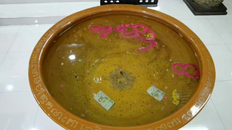 16 พฤษภาคม 2564) ภายในศาลาอาตี๋ สำเภาทอง วัดใหม่สี่หมื่น ต.สี่หมื่น อ.ดำเนินสะดวก จ.ราชบุรี บรรยากาศโค้งสุดท้ายก่อนหวยออก ซึ่งมี องค์ “อาตี๋ สำเภาทอง” พ่อค้าสำเภาจีน เทพเจ้าสายเฮงสิ่งศักดิ์สิทธิ์ขึ้นชื่อ และเป็นแลนด์มาร์กการขอหวยของ จ.ราชบุรี ด้วยความโด่งดังเรื่องความแม่นของตัวเลขที่ลอยอ่างน้ำมนต์ พญามังกร “อาตี๋ สำเภาทอง” ที่ได้โชคลาภติดต่อกันมาแล้วกว่า 52 งวด ซึ่งเป็นการทำพิธีหยดน้ำตาเทียนเป็นตัวเลขจากการประกอบพิธีจรดเลขโสรส ซึ่งเป็นพิธีโบราณ ที่จะนำกำลังวัน และดวงของวันที่ออกสลากรางวัล เพื่อหาเลขมงคล และนำมาใส่ไว้ในอ่างน้ำมนต์พญามังกร โดยให้ตัวเลขทั้ง 6 ตัวนั้นไหลหมุนเวียนจับกลุ่มตัวเลขกัน ได้กลุ่มเลข 3 ตัว 2 ตัว เพื่อเอาตัวเลขไปเสี่ยงโชค