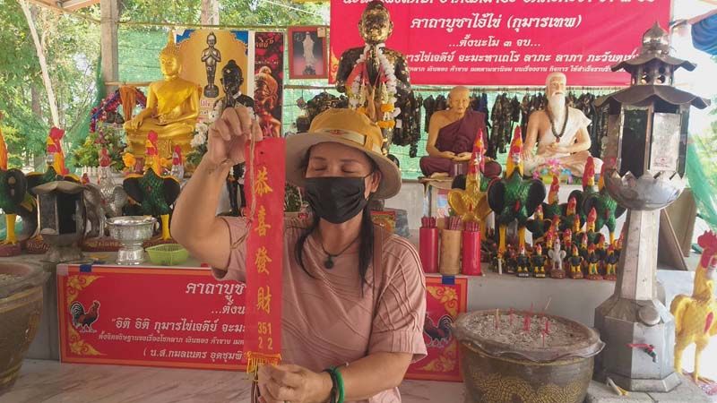 โดยในวันนี้ก็มีผู้โชคดีเดินทางมาแก้บนจุดประทัด 10,000 นัดหลังจุดแล้วขาดไม่ได้คือส่องตัวเลขหางประทัดมี 25,422 พระอาจารย์ลงมือจุดธูปเสี่ยงโชคที่มือไอ้ไข่เองมีเลข 476 ส่วนอีกรายมาแก้บนไอ้ไข่ประทัดอีก 10,000 นัดหลังเจรจาซื้อขายที่ได้สำเร็จ คอหวยก็ไม่พลาดส่องหางประทัด 351 22 ด้วย ส่วนขันน้ำมนต์ที่วางไว้หน้ารูปปั้น ไอ้ ไข่รุ่นบันดาลทรัพย์ มี 7-9-3-1 ตามสายตา เผื่อไอ้ไข่บันดาลทรัพย์ วัดศรีทรงธรรมให้โชคใกล้วันหวยออกกลางเดือนพฤษภาคม