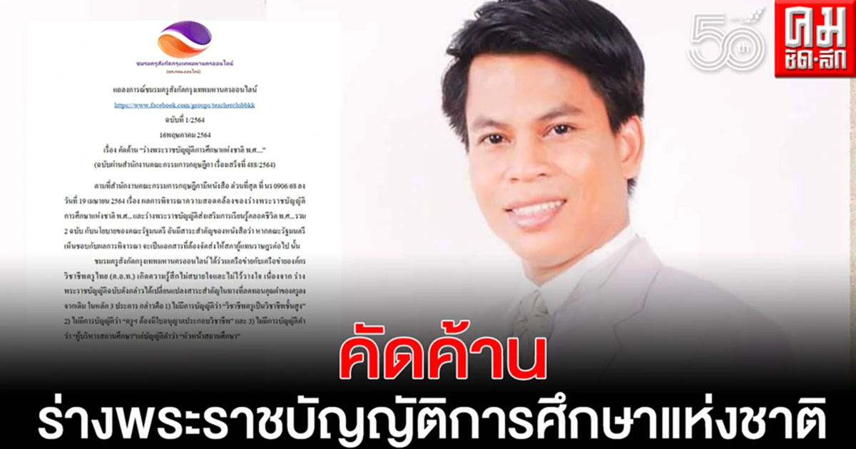 เมื่อวันที่ 16 พฤษภาคม 2564 ชมรมครูสังกัดกรุงเทพมหานคร ออกแถลงการณ์ ฉบับที่ 1/2564 เรื่อง คัดค้าน “ร่างพระราชบัญญัติการศึกษาแห่งชาติ พ.ศ….”