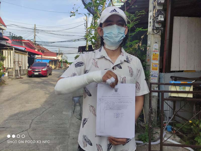 ต่อมาผู้สื่อข่าวได้เดินทางไปที่จุดเกิดเหตุพร้อมด้วยนายวิวัฒน์ พุ่มเจริญ อายุ 26 ปี อาชีพพนักงานส่งของ ผู้บาดเจ็บ โดยกล่าวว่า เมื่อวันที่ 15 พ.ค.2564 เวลา 05.30 น.ขณะที่ตนกำลังขับขี่ รถ จยย.ไปทำงานตามปกติ เมื่อมาถึงหน้าปั๊มดังกล่าว ตนไม่เห็นสายเคเบิ้ลที่ห้อยลงมาจากเสาไฟฟ้า จึงถูกสายเคเบิ้ลทำเกี่ยวเข้าที่คอของตนอย่างแรง ซึ่งขณะนั้นตนพยายามเกร็งคอเอาไว้ แต่ด้วยความเร็วของรถทำให้สายเคเบิ้ลยิ่งกระชากรัดที่คอจนแทบหายใจไม่ออก จากนั้นรถได้เสียหลักล้มไปอีกฝั่งของถนนและร่างของตนได้ตกจาก รถ จยย. กลิ้งไถลไปที่พื้นจนได้รับบาดเจ็บ หลังเกิดเหตุมีพนักงานปั๊มน้ำมันดังกล่าวเข้ามาช่วยเหลือ แต่ก็แกะสายเคเบิ้ลที่พันอยู่ที่คอของตนออกไม่ได้ เพราะสายเคเบิ้ลได้พันติดกับเส้นผม จนต้องหากรรไกรมาตัดออก ก่อนจะช่วยกันพาส่งรพ. ซึ่งตนได้รับบาดเจ็บที่บริเวณลำคอ เย็บ 2 เข็ม แขนขวาและลำตัวมีรอยถลอก หลังเกิดเหตุได้แจ้งความไว้ที่ สภ.บางบัวทอง