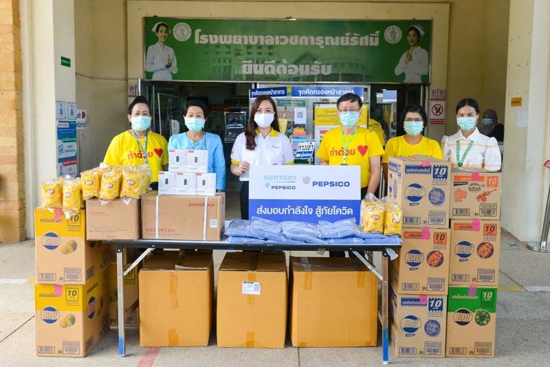 อย่างเร่งด่วนเพื่อรองรับผู้ป่วยที่มีแนวโน้มเพิ่มขึ้นต่อเนื่องความปลอดภัยของบุคลากรทางการแพทย์และความพร้อมด้านเครื่องมือแพทย์ถือเป็นเรื่องสำคัญที่สุด เป๊ปซี่โค ประเทศไทย และซันโทรี่เป๊ปซี่โค ประเทศไทย จึงขอเป็นส่วนหนึ่งในการสนับสนุนโรงพยาบาล โรงพยาบาลสนามแพทย์ เจ้าหน้าที่ผู้ปฏิบัติงานสาธารณสุขและหน่วยงานที่เกี่ยวข้องโดยการมอบอุปกรณ์การแพทย์ อุปกรณ์ป้องกันส่วนบุคคล (PPE) และผลิตภัณฑ์ของบริษัทเพื่อเป็นส่วนหนึ่งในการร่วมแก้ไขสถานการณ์โรคระบาดในครั้งนี้ให้ดีขึ้นเพื่อให้คนไทยทุกคนได้กลับมาใช้ชีวิตตามปกติโดยเร็ว”