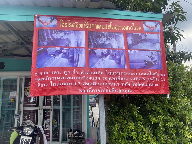 น.ส.ปราณี เขียวลี กล่าวต่ออีกว่า ตนอยากจะให้เจ้าหน้าที่ตำรวจช่วยติดตามโจรที่ขโมยชุดชั้นในนั้นมาลงโทษให้ได้เพราะตอนนี้ให้ได้เพราะตอนนี้ชาวบ้านใกล้เคียงในบริเวณหมู่บ้านนี้ได้ถูกขโมยชุดชั้นในแล้วหลายหลังคาเรือนแต่บ้านหลังอื่นนั้นไม่ได้มีกล้องวงจรปิดที่บ้านเช่นบ้านของตนจึงสามารถบันทึกพฤติกรรมและรูปพรรณเอาไว้ได้ ช่วงนี้ชาวบ้านก็หวั่นกลัวไม่รู้อนาคตโจรคนดังกล่าวจะทำมากกว่าการขโมยชุดชั้นในหรือไม่เพราะมีพฤติกรรมคล้ายคนโรคจิต เนื่องจากตนก็มีลูกสาวที่กำลังโตเป็นสาวอีกอย่างคนในชุมชนเดียวกันก็มีทั้งนักเรียน พนักงานบริษัท ที่ทำงานต้องเดินทางเข้าบ้านดึกดื่นค่ำคืน บ้างก็มีผู้สูงอายุผู้หญิงอยู่บ้านคนเดียว ตนจึงได้ทำป้ายขนาด 2 เมตร x 1.50 เมตร ติดไว้หน้าบ้านเพื่อเตือนภัยกับชาวบ้านข้างเคียงและชาวบ้านที่เดินทางผ่านไปมาในบริเวณหมู่บ้านกรีนเด้นโฮมให้ระวังคนร้ายเพื่อป้องกันชีวิตและทรัพย์สินต่อไป