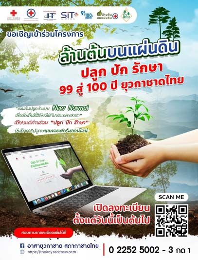 สำนักงานยุวกาชาด สภากาชาดไทย เปิดตัวโครงการ “ปลูก ปัก รักษา ล้านต้นบนแผ่นดิน” เพื่อร่วมบรรเทาผลกระทบจากปัญหาภัยธรรมชาติ และเฉลิมฉลอง “99 สู่ 100 ปี ยุวกาชาดไทย” โดยมีเยาวชน อาสายุวกาชาด ภาคีเครือข่ายและประชาชนทั่วไป ได้ร่วมกันขับเคลื่อนกิจกรรมพร้อมกันทั่วประเทศ