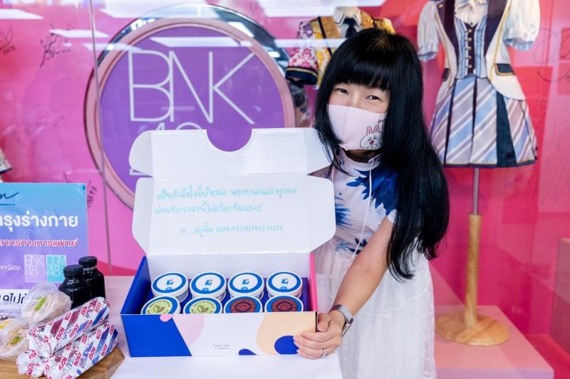 เฌอปราง – เฌอปราง อารีย์กุล กัปตันวง BNK48 ควงแขนมาพร้อมไข่มุก- วรัทยา ดีสมเลิศ และ ออม- ปุณยวีร์ จึงเจริญ รวมถึงสิตา – สิตา ธีรเดชสกุล เป็นตัวแทนเมมเบอร์ศิลปินไอดอลหญิง BNK48 ทั้งสามรุ่น และศิลปินวงไอดอลหญิงวงCGM48 จากบริษัท อินดิเพนเด้นท์ อาร์ทิสท์ เมเนจเม้นท์ จำกัด ( I AM) ที่รวมความตั้งใจของทุกเมมเบอร์ ทางเมมเบอร์และบริษัทฯ จึงขอเป็นอีกหนึ่งกำลังใจเพื่อบุคลากรทางการแพทย์และบุคลากรจิตอาสา ให้เกิดมีรอยยิ้ม มีกำลังใจในการทำงานต่อไป โดย ไข่มุก BNK48 มีความตั้งใจทำเมนูด้วยตนเอง อาทิ เมนูพุดดิ้งข้าวเหนียวมะม่วง ส่วนนาย BNK48 ได้คว้านผลไม้เงาะบรรจุพร้อมรับประทาน และ มิวสิค BNK48 กับการลงมือทำเมนูคานาเป้ทูน่า เป็นต้น