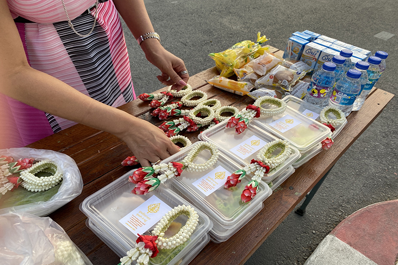 จากนั้นทางทีมงาน จะแจ้งเตือนล่วงหน้าก่อนวันทำบุญเพื่อรับข้อความอธิษฐานจากลูกค้า พร้อมจัดเตรียมชุดอาหาร เครื่องดื่ม ขนมสดใหม่ จัดทำได้มาตรฐาน Food Hygience โดยอดีตเชฟโรงแรม 5 ดาวและมีทีมงานเดินทางไปตักบาตรแทน พร้อมส่งภาพนิ่ง/คลิป VDO ระหว่างการตักบาตร ส่งให้กับลูกค้า เพื่อร่วมตั้งจิตอธิษฐานระหว่างที่กรวดน้ำที่บ้าน