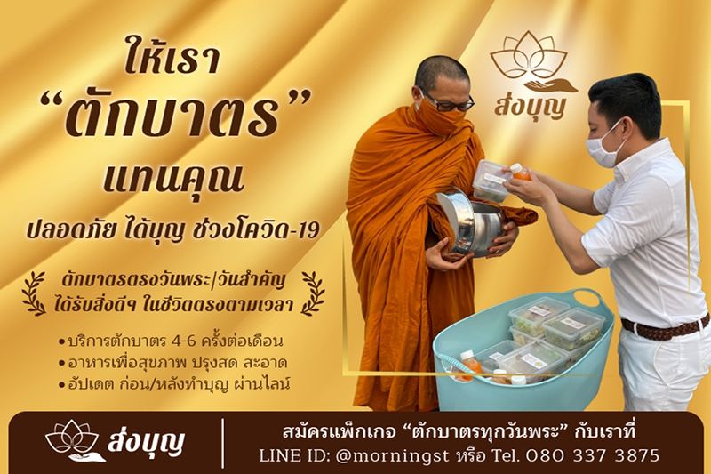 ด้วยเหตุนี้กระแสการ “ส่งบุญออนไลน์”ทั้งการรับจ้างตักบาตร ทำสังฆทานแทน จึงกลายเป็นเทรนด์ใหม่ที่เข้ามาช่วยให้การทำบุญสะดวกและปลอดภัยยิ่งขึ้น โดยคุณเอ-ณัฐภณ วุฒิกานากร หนึ่งในนักธุรกิจสายบุญ เจ้าของบริษัทจัดอบรมสัมมนา (Super A Team building) และร้านขายอาหารเช้าออนไลน์ “Morning Station” ที่เปิดบริการใหม่ “ส่งบุญออนไลน์” บริการตักบาตรแทนในทุกวันพระและวันสำคัญ เล่าว่า
