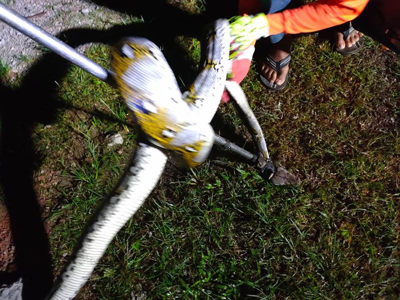 หลังจากที่นายวีรศักดิ์ ได้รับแจ้งจึงพร้อมด้วยว่าที่ รต.ไกรวิชญ์ อ่อนมนิล และนายปฏิพล มณีโชต เร่งนำอุปกรณ์ในการจับสัตว์เลื้อยคลานเข้าทำการตรวจสอบ และจับทันที