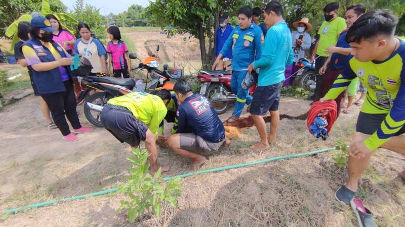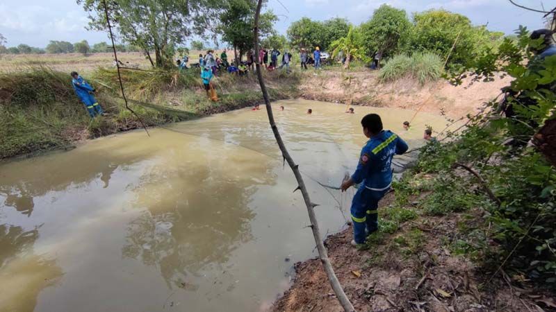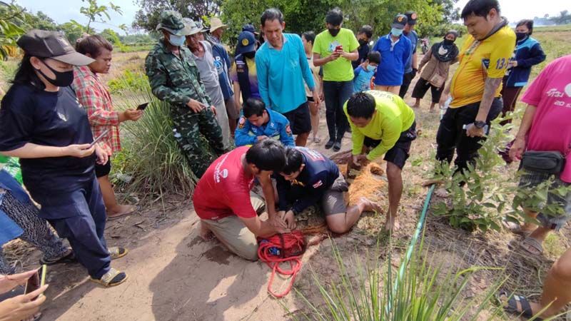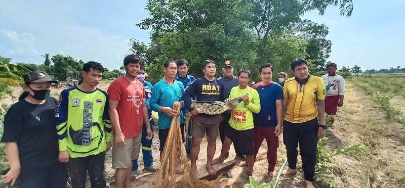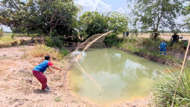 กู้ภัยสวมบทไกรทอง! จับจระเข้หลุดออกจากฟาร์ม โผล่ลอยคอในสระน้ำท้ายหมู่บ้าน