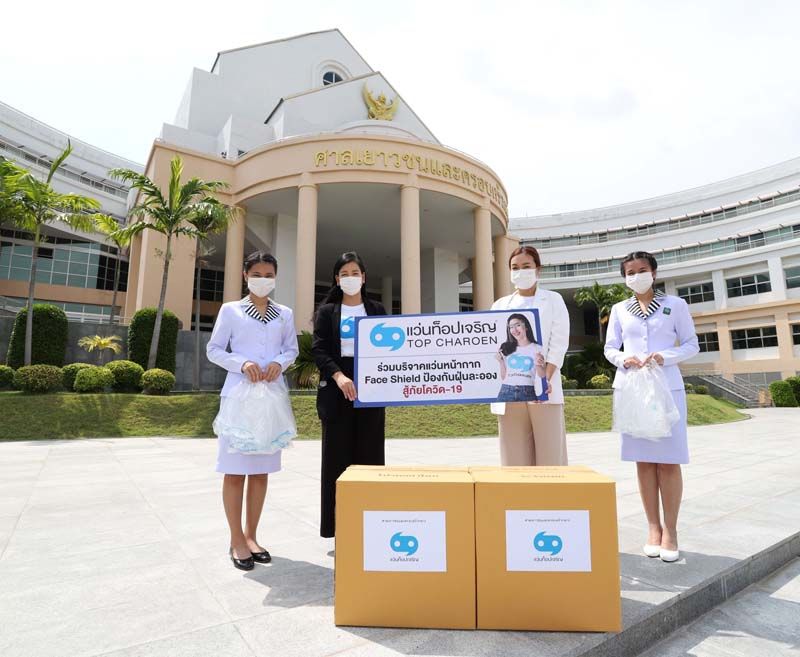 แว่นท็อปเจริญ นำทีมส่งมอบแว่นหน้ากากเฟซชิลด์เพิ่มเติมอีกจำนวน 200 ชุด รวมทั้งสิ้น 400 ชุด แก่ศาลเยาวชนและครอบครัวกลาง โดยมีอุไรรัตน์ น้อยสุวรรณ รองอธิบดีผู้พิพากษาศาลเยาวชนและครอบครัวกลาง พร้อมด้วยภัทรศักดิ์ ศิริสินธว์ รองอธิบดีฯ, อัมภัสชาดิษฐอำนาจ เลขานุการศาลฯ และ ดร.ปัณฑิพาณ์ธาราภิบาล ผู้พิพากษาสมทบ ร่วมรับมอบ เพื่อใช้เป็นอุปกรณ์เสริมในการรับมือกับสถานการณ์การแพร่ระบาดของเชื้อไวรัสระลอกใหม่ และยังช่วยป้องกันฝุ่นละอองบริเวณใบหน้าและดวงตา ให้แก่ผู้พิพากษา ผู้พิพากษาสมทบ ข้าราชการและเจ้าหน้าที่ของศาลเยาวชนและครอบครัวกลาง ในการพิจารณาคดีและปฏิบัติหน้าที่ดูแลช่วยเหลือเด็กและเยาวชนในสังคมไทย ณ ศาลเยาวชนและครอบครัวกลาง กรุงเทพมหานคร