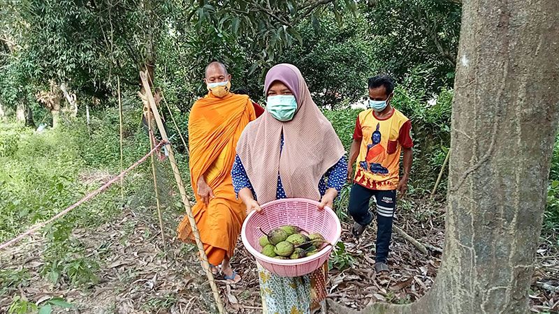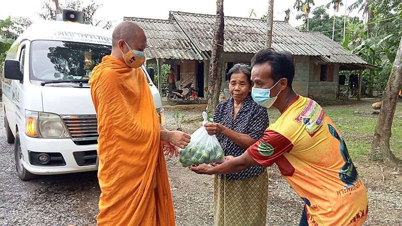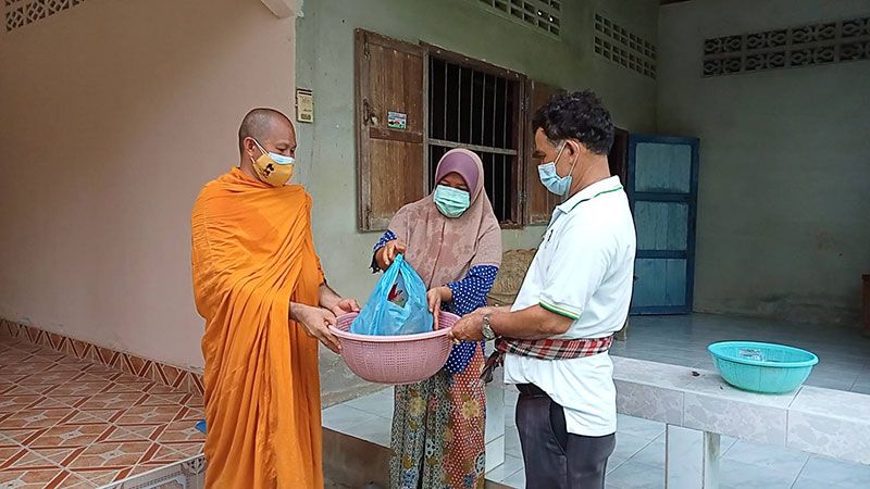 พระมหาอารยนันต์ อานันโท เจ้าอาวาสวัดเขาพระทอง อ.ชะอวด จ.นครศรีธรรมราช พร้อมด้วยนายดิเรก หนูสาย นายกองค์การบริหารส่วนตำบลวังอ่าง คณะกรรมการวัดฯ รวมทั้งญาติโยมผู้มีจิตศรัทธา ร่วมกันปรุงข้าวกล่อง เมนูแกงไก่ถั่วฝักยาว ไข่เจียวจำนวน 300 กล่อง และน้ำดื่ม นำแจกจ่ายให้ญาติโยมครอบครัวชุมชนชาวมุสลิม หมู่บ้านคลองใหม่ ต.วังอ่าง อ.ชะอวด เพื่อบรรเทาความเดือดร้อน พร้อมสอบถามสารทุกข์ให้กำลังใจช่วงการแพร่ระบาดของเชื้อโรคโควิด – 19