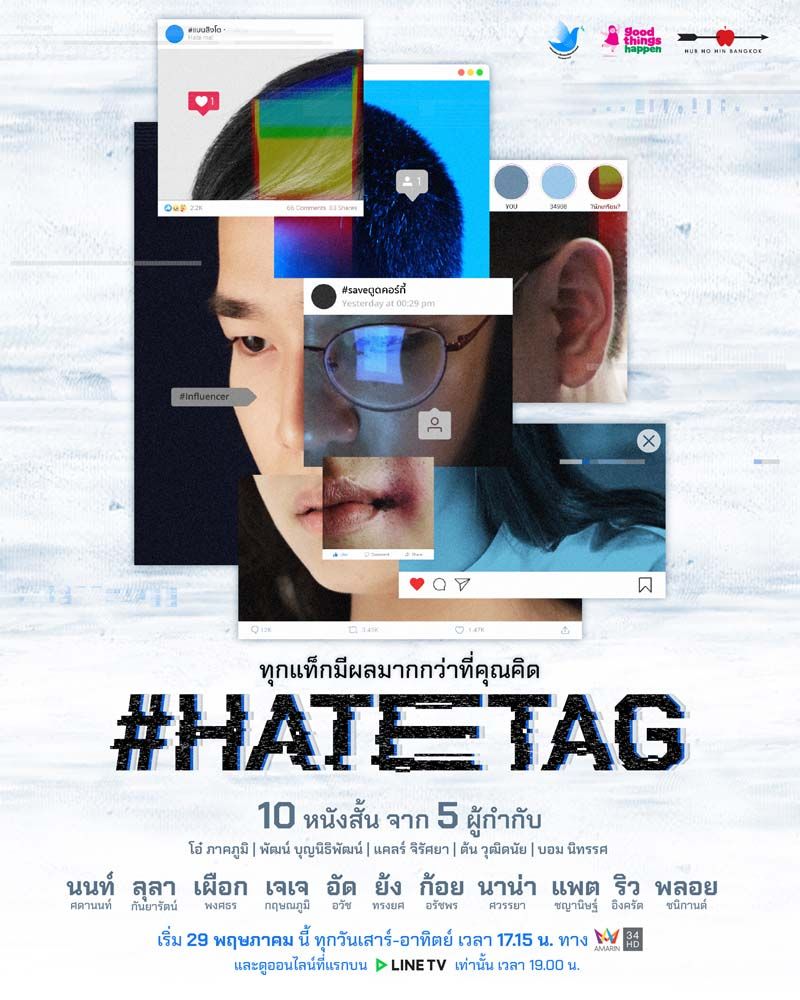 ถือเป็นโปรเจกต์ที่น่าจับตามองและอยากให้ทุกคนมาร่วมพิสูจน์ความสนุกไปด้วยกัน เมื่อ บริษัท กู๊ดธิงแฮพเพ่น จำกัด ร่วมมือกับ บริษัท หับโห้หิ้น บางกอก จำกัด ส่ง โปรเจกต์ #HATETAG หนังสั้น 10 เรื่อง จาก 5 ผู้กำกับคุณภาพ ที่ได้รับการยอมรับในผลงาน นำทีมโดย โอ๋-ภาคภูมิ วงศ์ภูมิ ผู้กำกับภาพยนตร์ Home Stay, พัฒน์-บุญนิธิพัฒน์ ผู้กำกับ ฉลาดเกมส์โกงเดอะซีรี่ส์, แคลร์-จิรัศยา วงษ์สุทิน ผู้กำกับซีรี่ส์ ONE YEAR 365 วัน บ้านฉัน บ้านเธอ และ 2 ผู้กำกับโฆษณารุ่นใหม่การันตีด้วยรางวัลมากมาย ทั้ง ต้น-วุฒิดนัย อินทรเกษตรและ บอม-นิทรรศ สินวัฒนกุลมาร่วมถ่ายทอดความสนุก ความเข้มข้นของหนังสั้น 10 เรื่องผ่านมุมมองของผู้กำกับที่ตีความหมายสังคมไซเบอร์ไทยได้สนุกเร้าใจที่สุด