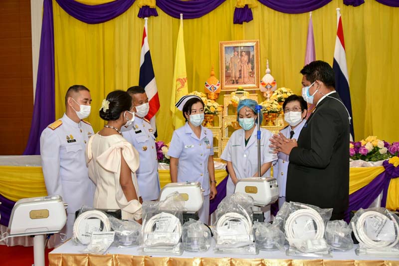 วันที่ 21 พฤษภาคม 256 เวลา 10.00 น. ที่โรงพยาบาลสมเด็จพระปิ่นเกล้า กรมแพทย์ทหารเรือ พระบาทสมเด็จพระเจ้าอยู่หัว และสมเด็จพระนางเจ้าฯ พระบรมราชินี ทรงห่วงใยพสกนิกรที่ติดเชื้อจากการแพร่ระบาดของโรคติดเชื้อไวรัสโคโรนา 2019 ที่กลับมาแพร่ระบาดอยู่ในขณะนี้ ในการนี้ ทรงพระกรุณาโปรดเกล้าโปรดกระหม่อมพระราชทานพระราชทรัพย์ส่วนพระองค์ เพื่อนำไปจัดหาเครื่องช่วยหายใจชนิดอัตราไหลสูง hi flow nasal cannula ( HFNC) NeoHif – i7 จำนวน 10 เครื่อง พระราชทานแก่โรงพยาบาลสมเด็จพระปิ่นเกล้า กรมแพทย์ทหารเรือ เพื่อนำไปใช้รักษาพยาบาลผู้ป่วยโรคโควิด 19