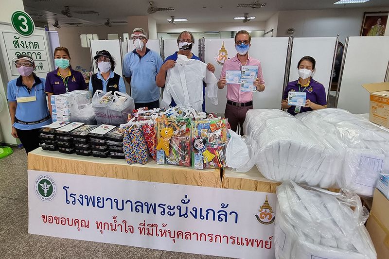 เกรก ลันจ์ นักธุรกิจในกรุงเทพฯ เจ้าของกิจการเครือร้านอาหาร Sunrise Tacos อันโด่งดังได้จัดระบบโลจิสติกส์สำหรับการบริจาคผ่านองค์กรช่วยเหลือในชุมชนประจำเขตพื้นที่กรุงเทพมหานคร เมื่อวันที่ 9 พฤษภาคมที่ผ่านมา เขาได้นำชุดป้องกันส่วนบุคลจำนวน 200 ชุด เฟซชิลด์ ถุงคลุมรองเท้า และหน้ากาก N95 พร้อมถุงมือ 1,000 คู่ ไปมอบให้กับโรงพยาบาลสนามของทางมหาวิทยาลัยธรรมศาสตร์ และอุปกรณ์มูลค่ากว่าอีก 60,000 บาทให้กับโรงพยาบาลสนามของโรงเรียนนนทบุรีวิทยาลัยในจังหวัดนนทบุรีเมื่อวันที่ 7 พฤษภาคมที่ผ่านมา