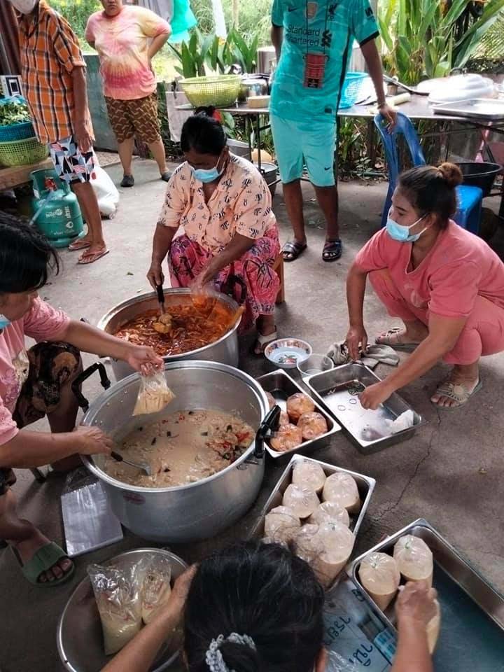 “แม้มีคนช่วยเหลืออยู่บ้างแต่ไม่มากเหมือนโควิดระลอกแรกเพราะผู้ประกอบการเองต่างก็เดือดร้อนด้วยเช่นกัน ยิ่งชุมชนแออัดถูกมองว่าเป็นคลัสเตอร์ใหญ่ด้วย ทำให้เกิดความรู้สักกลัว และไม่มีใครอยากเข้ามาช่วยเหลือ ตอนนี้พวกเราต้องทำครัวแจกอาหารเพราะชาวบ้านไม่มีรายได้เลย โดยมีมูลนิธิแห่งหนึ่งที่ทำงานเรื่องลดขยะอาหาร ก่อนอาหารหมดอายุเขานำมาบริจาคให้ชุมชน เราก็นำมาปรุง ส่วนเครื่องปรุงก็มีคนเอามาช่วย ตอนแรกๆ ควักเงินจ่ายกันเอง
