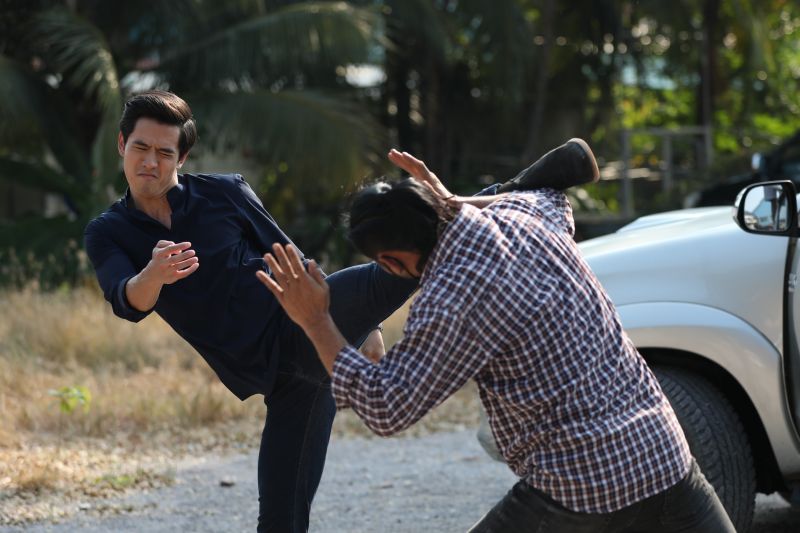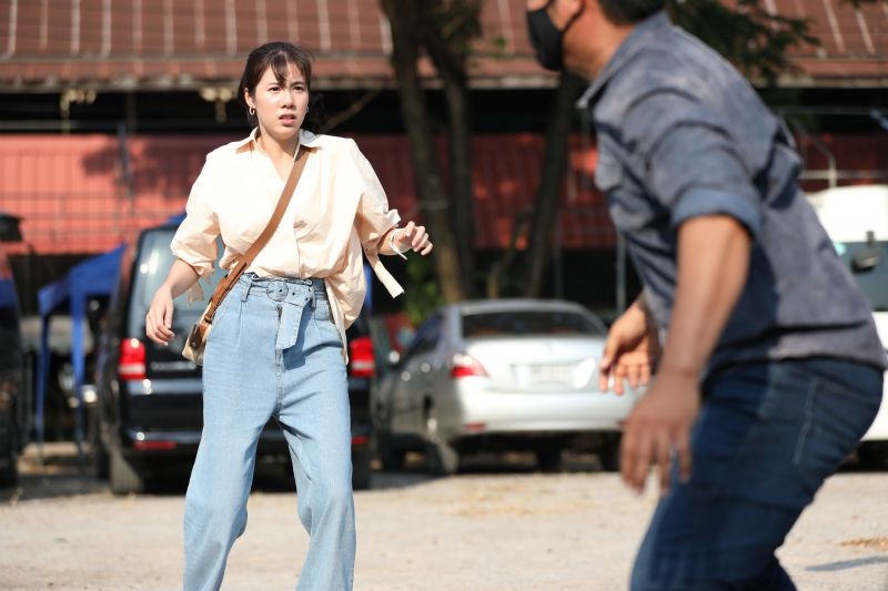 เป็นฉากหลังจากที่ณเรศ(ฟิล์ม) และ ทราย(เอสเธอร์)ได้เบาะแสว่ามีบุคคลปริศนา ไปจ่ายค่าโทรศัพท์ ซึ่งเป็นเบอร์ของณรินทร์(ภูริ หิรัญพฤกษ์) ทำให้ทั้งคู่สงสัยว่าณรินทร์อาจจะยังมีชีวิตอยู่ จึงตัดสินใจเดินทางไปขอให้ตำรวจช่วยตรวจสอบ แต่ยังไม่ทันที่จะได้รู้ความจริง จู่ๆ ก็มีคนร้ายตามไล่ยิง ทำให้ต้องพากันหนีตายกันอลหม่าน ฉากนี้ผู้กำกับยกกองไปถ่ายทำกันที่ ตลาดน้ำจังหวัดราชบุรี เมื่อทีมงานเซ็ตทุกอย่างพร้อม ผู้กำกับเรียกฟิล์ม-เอสเธอร์ มาซักซ้อมคิวทันที งานนี้ทั้งคู่ต้องเจองานหนัก มีทั้งคิวบู๊แอ็คชั่น และต้องวิ่งหนีข้ามกระโดดเรือกันกลางคลองกันจริงๆ จึงใช้เวลาซักซ้อมกันอยู่หลายรอบเพื่อป้องกันการผิดคิว แต่เพราะเป็นคลองที่มีเรือสัญจรไปมา ทำให้เรือที่จอดอยู่โคลงเคลง กว่าจะข้ามผ่านไปได้เล่นเอาทุลักทุเลเมื่อซักซ้อมกันจนคล่อง ก็เริ่มถ่ายจริงทันที เริ่มที่ ฟิล์มและเอสเธอร์ ได้ข่าวว่ามีบุคคลปริศนาจ่ายค่าโทรศัพท์ให้ภูริ ทั้งคู่สงสัยว่าภูริอาจจะยังไม่ตาย จึงรีบไปพิสูจน์หาความจริง แต่แล้วจู่ๆ ก็มีคนร้ายบุกมาไล่ยิงทั้งคู่สนั่นกลางตลาด ฟิล์มรีบพาเอสเธอร์วิ่งหนีอลหม่าน แต่ระหว่างที่ฟิล์มพาเอสเธอร์วิ่งหนี จนมาหยุดชะงักเมื่อมีคนร้ายกลุ่มใหญ่ขับรถมาดักหน้า พร้อมกับกรูกันเข้ามาจับตัว แต่ฟิล์มกับเอสเธอร์ไม่ยอมให้จับง่ายๆ แท็กทีมกันสู้กับคนร้ายกันสุดชีวิต ก่อนจะหาจังหวะหนี แต่งานนี้โชคไม่ดีกลับไปจนมุมอยู่ตีนสะพานข้ามคลอง แถมคนร้ายยังวิ่งถือปืนไล่ตามมาติดๆ และเตรียมลั่นไกปืนยิงใส่ทั้งคู่ฟากฟิล์มเห็นว่าไม่รอดแน่หันซ้ายหันขวาก่อนจะตัดสินใจพาเอสเธอร์กระโดดลงเรือที่จอดลอยขายของอยู่ และวิ่งข้ามหนีไปอีกฝั่งคลอง ท่ามกลางความตกตะลึงของแม่ค้าในตลาดเอาหล่ะสิ…เจอตามไล่ยิ่งเอาชีวิตกันขนาดนี้ ทั้งคู่จะรอดเงื้อมมือของคนร้ายไปได้สำเร็จหรือไม่? ห้ามพลาดละคร “พายุทราย” คืนวันจันทร์ 24 พฤษภาคมนี้ เวลา 20.30น. ทางช่องวัน31