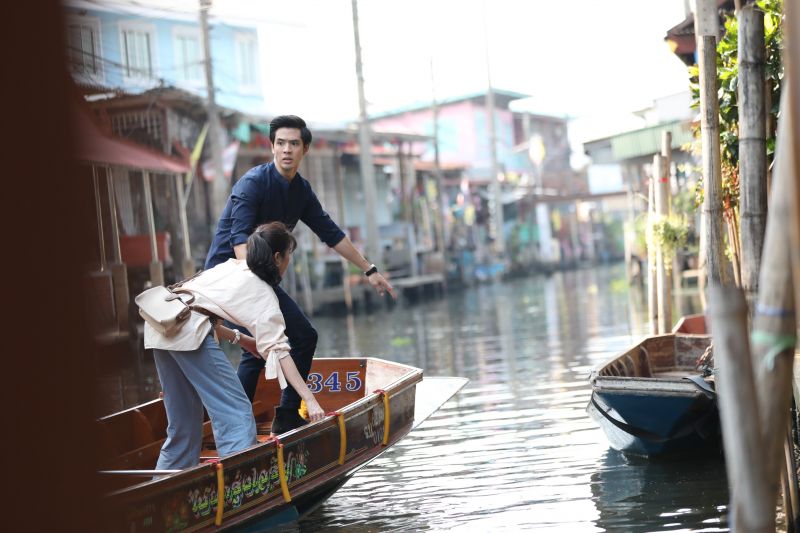 ‘ฟิล์ม-เอสเธอร์’จูงมือบู๊สนั่น โดดลงเรือหนีตายกลางตลาดน้ำใน ‘พายุทราย’