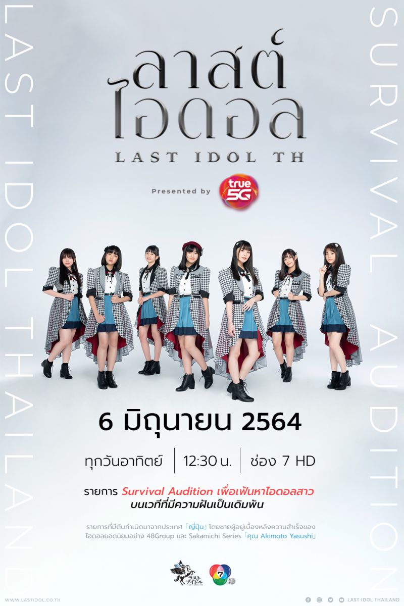 เผยโฉมกันไปเป็นที่เรียบร้อยแล้วสำหรับรายการใหม่ล่าสุดส่งตรงจากประเทศญี่ปุ่น Last Idol Thailand Presented by True 5G (ลาสต์ไอดอล ไทยแลนด์) เนื่องจากสถานการณ์ของโรคโควิด 19 ที่กำลังระบาดเพิ่มมากขึ้น ทำให้ต้องปรับรูปแบบการเปิดตัวรายการเป็นรูปแบบออนไลน์ผ่านทาง Facebook และ Youtube ของ Last Idol Thailand แต่ถึงอย่างไรความน่าสนใจและความสนุกของรายการก็ไม่ได้น้อยลงไปเลย ซึ่งเตรียมเปิดม่านให้คุณผู้ชมได้รับชมกัน ทุกวันอาทิตย์ เวลา 12.30 – 13.30 น. ทางช่อง 7 HD เริ่มวันอาทิตย์ที่ 6 มิถุนายนนี้ และสามารถรับชมคอนเท้นต์สุดพิเศษผ่านทางแอพพลิเคชั่น True ID