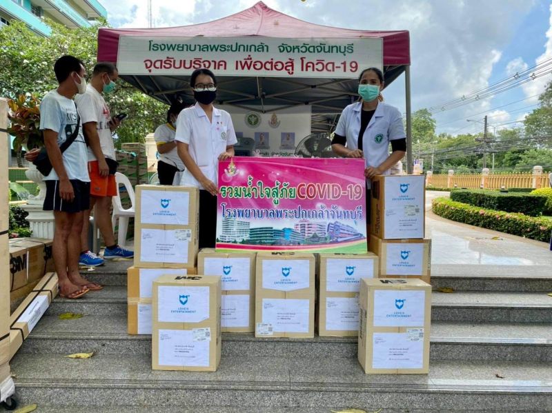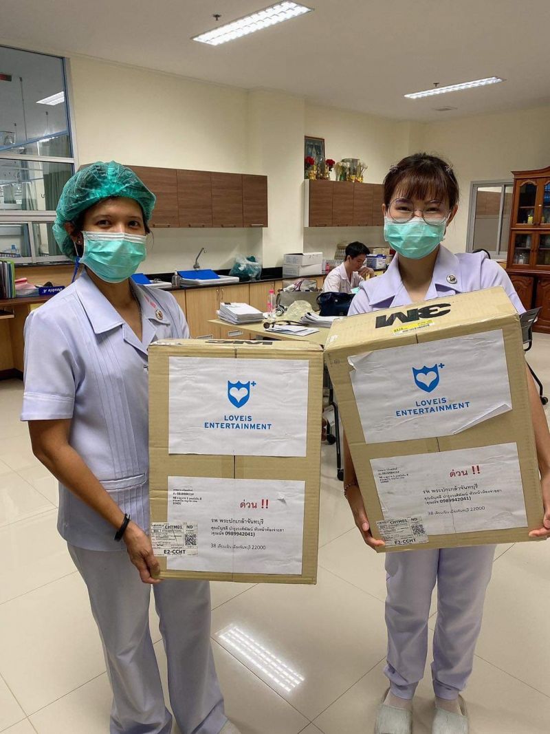 บริษัท เลิฟอิส เอ็นเตอร์เทนเม้นท์ จำกัด โดย คุณเทพอาจ กวินอนันต์ ประธานเจ้าหน้าที่บริหารได้ส่งมอบอุปกรณ์ทางการแพทย์ต่างๆ ที่โรงพยาบาลยังขาดแคลนอันประกอบไปด้วย ปลอกหมอน, ผ้าห่ม, ผ้าปูที่นอนสำหรับผู้ป่วยโควิด-19และหน้ากากอนามัยสำหรับบุคลากรทางการแพทย์เจ้าหน้าที่ และผู้ที่เข้ารับการรักษาตัวได้สวมใส่เพื่อความปลอดภัย โดยมีคุณณัชชา บำรุงวงศ์พัฒน์ เป็นผู้รับมอบ ณ โรงพยาบาลพระปกเกล้า จังหวัดจันทบุรี