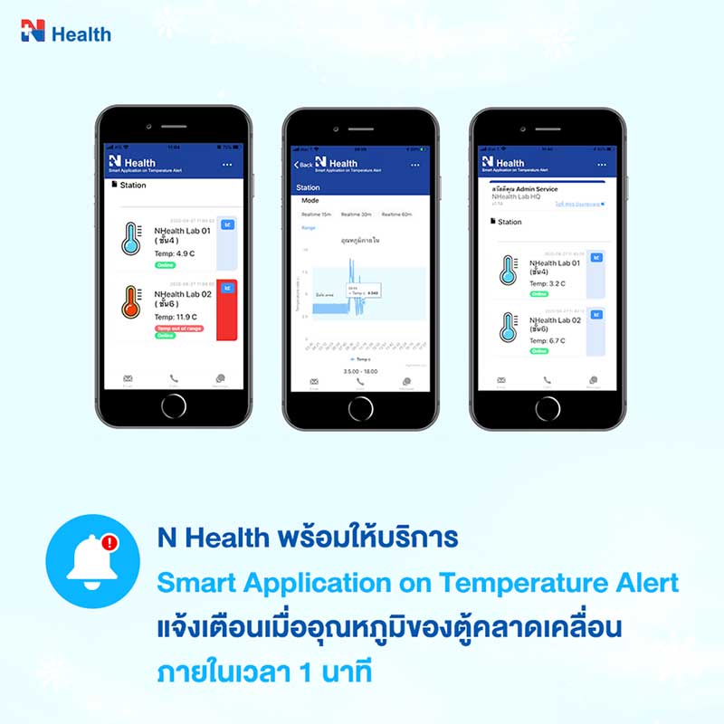 นายเอกรักษ์ อำไพภักดิ์ ผู้ช่วยผู้จัดการด้านบริการเทคโนโลยีการทดสอบ บริษัท เนชั่นแนล เฮลท์แคร์ ซิสเท็มส์ จำกัด (N Health) เปิดเผยว่า ทีมวิศวกรทางการแทพย์จาก N Health ผู้ให้บริการด้านการสนับสนุนบริการทางการแพทย์และธุรกิจโรงพยาบาล ได้พัฒนาระบบการแจ้งเตือนระดับอุณหภูมิภายในตู้แช่ยาหรือวัคซีน ผ่านเว็บเบราว์เซอร์หรือแอปพลิเคชั่นบนโทรศัพท์มือถือทั้งระบบ IOS ระบบ Android ภายใต้ชื่อ “Smart Application on Temperature Alert” สำหรับตู้เย็นเก็บยาและวัคซีน เพื่อความปลอดภัยและควบคุมอุณหภูมิที่ได้ตามมาตรฐาน ทำให้หน่วยงานต่างๆ เกิดความมั่นใจในการเก็บรักษายาและวัคซีน ที่ผ่านการควบคุมอุณหภูมิที่ได้มาตรฐานก่อนจะนำไปใช้กับผู้ป่วย โดยสามารถควบคุม ตรวจสอบและดูข้อมูลได้ตลอดเวลาผ่านทางระบบมือถือและอินเตอร์เนต