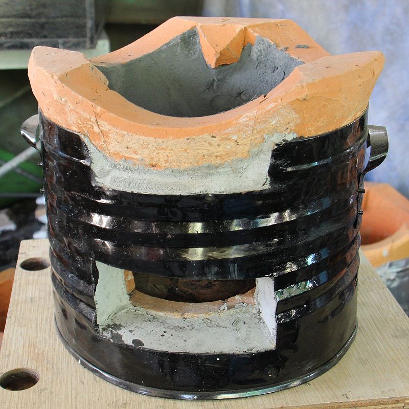 จากฝีมือคุณปู่กรี ทับทิมทอง อายุ 81 ปี อยู่บ้านเลขที่ 128 หมู่ 3 ต.โคกหม้อ อ.เมือง จ.ราชบุรี ซึ่งได้ถ่ายทอดวิชาการปั้นเตาอั้งโล่ให้กับ นายพงศธร ทับทิมทอง ซึ่งเป็นหลานชาย หลังจากที่ได้เรียนรู้ทุกขั้นตอนจนเกิดความชำนาญ แต่ด้วยขั้นตอนที่ต้องใช้เวลาในการปั้นรูปทรง การตกแต่ง และนำไปตากแดดก่อนจะนำไปเข้าเตาเผาได้ ต้องใช้เวลาข้ามวัน ข้ามคืน กว่าจะได้เตาอั้งโล่ 1 ลูก ที่ผ่านกรรมวิธีเผาออกมาได้สมบูรณ์ จากนั้นจึงนำมาตกแต่งทาสีอีกเล็กน้อยก็พร้อมส่งจำหน่ายได้