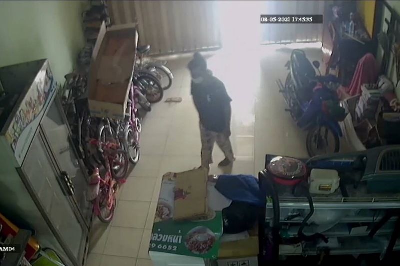 โดยในภาพวงจรปิด มีผู้หญิงคนหนึ่ง เดินวนเวียนอยู่บริเวณหน้าบ้าน เหมือนจะหาของอะไรสักอย่าง และเดินเข้าไปในบ้าน จากนั้นก็เดินเวียนอยู่ในบ้านรื้อค้นอยู่ประมาณ 2-3 นาที แล้วเดินออกไป