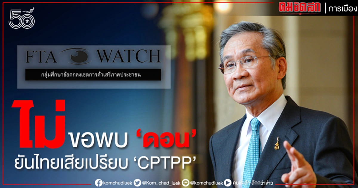 “FTA Watch” ปฏิเสธเข้าพบ”ดอน” ยันรัฐไม่ควรเข้าร่วม CPTPP