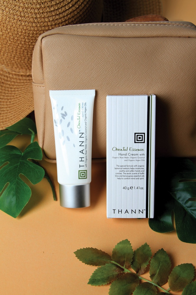 ‘โอเรียนทอล เอสเซ้นซ์ แฮนด์ ครีม’ (Oriental Essence Hand Cream) ขนาด 40 มล. ราคา 550 บาท มอบความเนียนนุ่ม ปกป้องและรักษาสมดุลความชุ่มชื้นของผิวด้วยส่วนผสมของสารสกัดธรรมชาติ อาทิ น้ำกุหลาบออแกนิค (Organic rose water), น้ำมันมะพร้าวออแกนิค (Organic coconut oil), น้ำมันอาร์แกนออแกนิค (Organic argan oil) และน้ำมันรำข้าว (Rice bran oil) พร้อมกลิ่นหอมสดชื่นเบาสบายด้วยกลิ่นอายแห่งโลกตะวันออกด้วยส่วนผสมของน้ำมันหอมระเหยธรรมชาติจากตะไคร้ (Lemongrass) และมะกรูด (Kaffir lime)