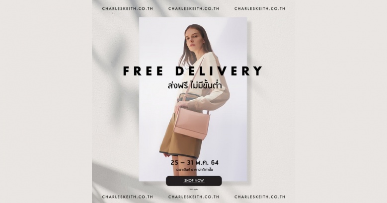 “ชาร์ล แอนด์ คีธ” แบรนด์รองเท้า กระเป๋า และเครื่องประดับแฟชั่นสุดชิค มีโปรส่งฟรี ไม่มีขั้นต่ำกับโปรโมชั่น Charles and Keith Free Delivery! อยู่บ้านแบบชิลล์ๆ ช้อปเท่าไหร่ก็ไม่เสียค่าส่ง (เฉพาะสินค้าราคาปกติเท่านั้น) โปรเริ่มตั้งแต่วันนี้ถึง 31 พฤษภาคมนี้เท่านั้น ช้อปเลย!!