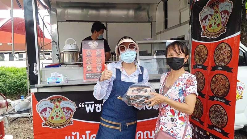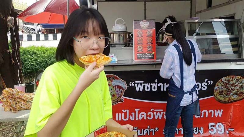 สาวเปิดท้ายรถกระบะดัดแปลงเป็นร้านขาย ‘พิซซ่า’ ริมทาง สร้างรายได้