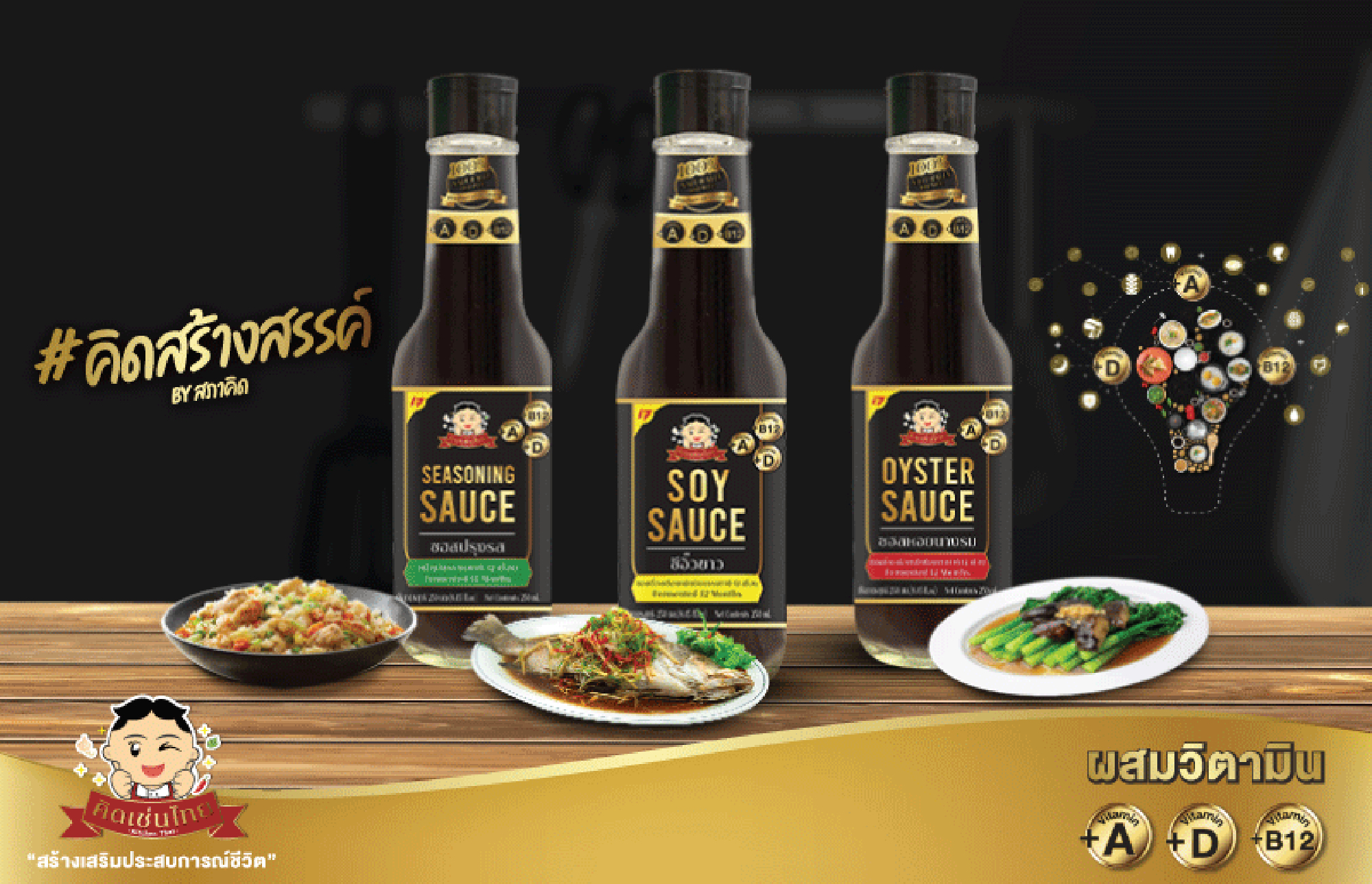 Mr. Piti Bhirom Bhakdi, CEO of Food Factors Co., Ltd., revealed that the overall sauce and seasoning market is filled with potential and growth. Looking back at the past year, the market valued at 41.8 billion, but with an average 4.3% growth, the company has decided to research and develop new products for this market to suit consumer needs and build a complete product portfolio. “Kitchen Thai” is an entirely new brand under the sauce and seasoning category with three products for initial market launch, soy sauce, seasoning sauce, and oyster sauce with vitamins added for health-conscious consumers.